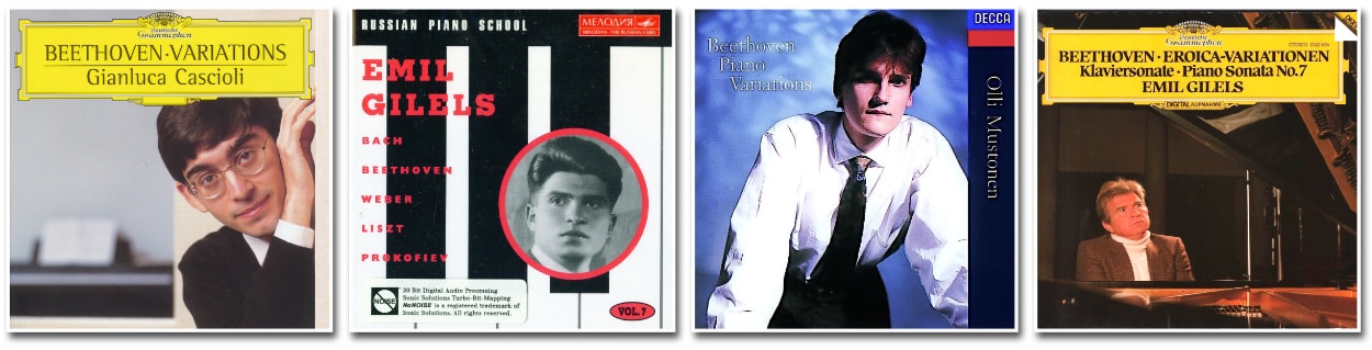 Nombre de ces variations ne font pas partie du corpus officiel de ses oeuvres publiées. Elles sont répertoriées dans le catalogue WoO –Werke orne Opuszahle– ou dans le plus tardif catalogue Hess, et certaines ont été composées lorsqu’il était encore adolescent, mais même ces « petites pièces » sont souvent remarquablement intéressantes et permettent de mieux comprendre la réputation de Beethoven-pianiste-improvisateur qui était la sienne de son vivant, avant qu’il ne devienne sourd : au fur et à mesure du déclin progressif de son audition, il se plaignait régulièrement que ses pianos, même les plus performants de l’époque, ne produisent pas un niveau sonore suffisant…