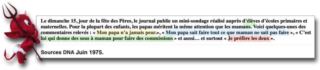 La vérité sort de la bouche des enfants, c’est bien connu ! A la même époque, les mamans étaient encore « gentilles, aimantes, douces et tendres »… C’était le bon temps ! 😈 –Cliquer sur l’image pour la voir en plus grand–