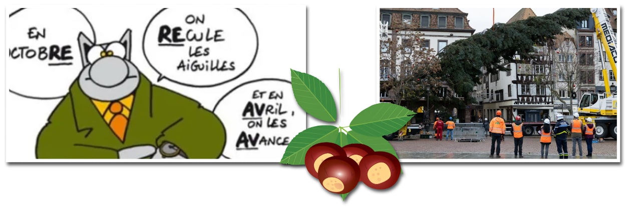 • C’est aussi l’heure d’installer le grand sapin, qui sera ensuite retaillé et décoré juste à temps pour l’ouverture du Marché de Noël ! L’histoire est un éternel recommencement… –Cliquer sur l’image pour la voir en plus grand-.