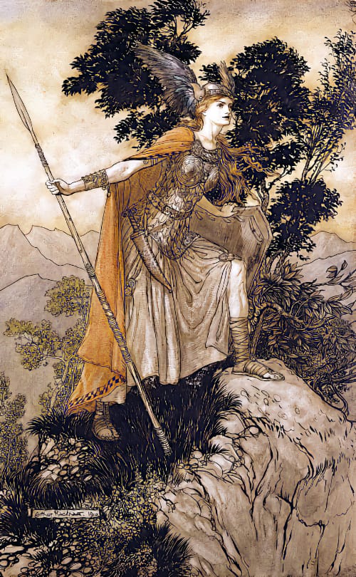 À l’acte II, Wotan veut protéger Siegmund, car il voit en lui un homme libre pour accomplir ses plans : reconquérir l’anneau forgé à partir de l’or du Rhin. Mais Fricka, déesse du mariage, force Wotan à respecter la loi et à condamner l’inceste. Wotan, dévasté, doit obéir, et ordonne à Brünnhilde, sa Valkyrie favorite, de laisser Siegmund mourir. Brünnhilde, bouleversée par la grandeur de l’amour des deux amants, désobéit à Wotan. Elle tente de sauver Siegmund et affronte Hunding.Wotan intervient lui-même, brise Nothung, et Hunding tue Siegmund. Wotan tue Hunding par dégoût, mais il est trop tard : le destin qu’il voulait éviter est scellé.
