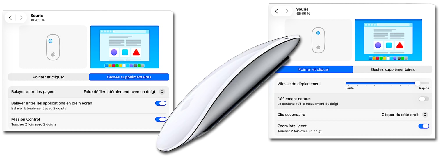 Du coup, j’en ai commandé une nouvelle, presque identique au câble près –suite au remplacement imposé par l’UE du Lightning par un USB-C-. Je n’ai d’ailleurs pas hésité longtemps : en effet, si certains utilisateurs d’Apple, et même des aficionados de très longue date, détestent cette souris, je la trouve pour ma part très ergonomique et parfaitement adaptée à mes plutôt petites mains, et elle est tout-à-fait configurable très aisément.