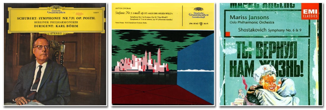 Trois « neuvièmes symphonies » composent la playlist de ce jour, dont deux ont eu leur statut de « neuvième » arrêté assez tardivement : celle de Schubert, dite aussi « La Grande », fut successivement numérotée n°7 –longtemps-, puis n°8 dans le Catalogue Deutsch –quand l’actuelle « Inachevée », désormais n°8, était numérotée n°5…-, avant de trouver sa numérotation –définitive ?– de n°9 ; celle de Dvorak, la très célèbre « Symphonie du Nouveau monde », elle fut créée du vivant du compositeur comme sa symphonie n°5, et publiée comme telle avant de devenir sa symphonie n°9, dans sa numérotation révisée à la fin des années 50 ! –Cliquer sur l’image pour la voir en plus grand-.