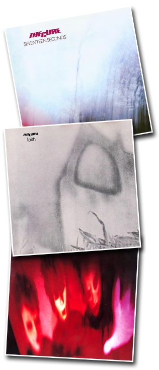 Au courant des années 80, The Cure sortirent assez rapidement trois albums qui formèrent une somme plutôt cohérente que l’on décrivit plus tard comme leur «Trilogie glacée» : «Seventeen Seconds», puis «Faith» et enfin «Pornography» –198, 1981, 1982-. Il convient d’accompagner ces trois albums du single «Charlotte Sometimes» –1981– et de l’insolite et peu connu support musical –une longue et lente mélopée, très hypnotique– du film d’animation «Carnage Visors» –1981– pour compléter cette première trilogie, qui évolue peu à peu du minimalisme introverti vers l’album le plus sombre, d’une noirceur absolue et d’un caractère dépressif total, de toute la discographie pop-rock des années 80 –et au-delà-. Cette «Trilogie glacée» –cliquer sur l’image de droite pour la voir en plus grand– a très largement contribué à installer The Cure comme l’un des groupes emblématiques du mouvement «gothique», ce que récuse pourtant Robert Smith.