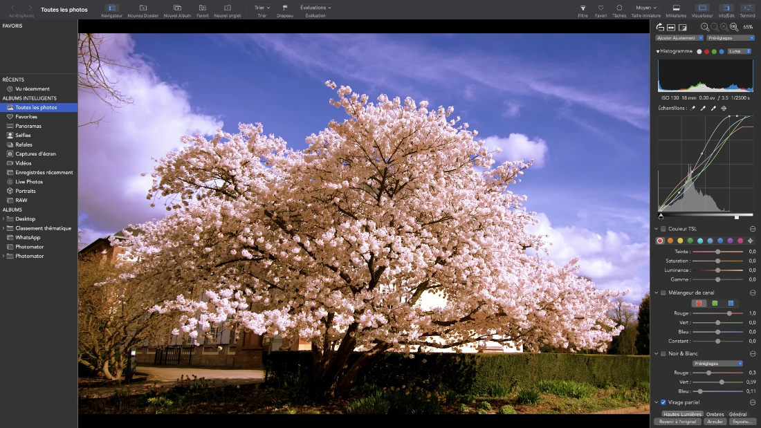 Courbes RGB et multiples curseurs de rigueur pour le post-traitement des fichiers bruts –le traitement par lot, selon le thème des photos, rend l’opération relativement rapide et peu fastidieuse– : j’en ai essayé beaucoup et si la logique est globalement la même pour tous les logiciels de post-traitement –passer de l’un à l’autre oblige cependant à changer un peu ses habitudes-, les résultats obtenus sont pourtant à chaque fois un chouïa différents !