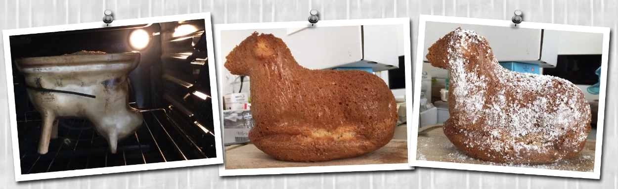 Une recette –parmi beaucoup d’autres…-, ainsi que l’histoire de cet agneau pascal, sont disponibles ici. Selon les recettes et la matière du moule utilisé, les durées et la température de cuisson annoncées sont très variables, le plus simple reste de surveiller son four au bout de 25 à 30 minutes. Le démoulage se fait après un temps de refroidissement. On trouve même, désormais, dans certains boulangeries, des versions « améliorées » avec ajout de pépites de chocolat ou autres raisins secs, mais, pour moi, la version la plus simple est la plus goûteuse…