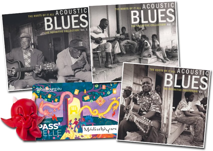 Au grand désespoir de TheCookingCat, ils ont un rayon « Blues » vraiment très attractif, et je me suis empressé d’emprunter les trois albums de 2 CD chacun qui feront mon bonheur dans les prochains jours : du blues acoustique « rural », très ancien -les premiers témoignages datent de 1923-, par des artistes dont je ne connaissais pas plus de la moitié ! –Cliquer sur l’image pour la voir en plus grand-.
